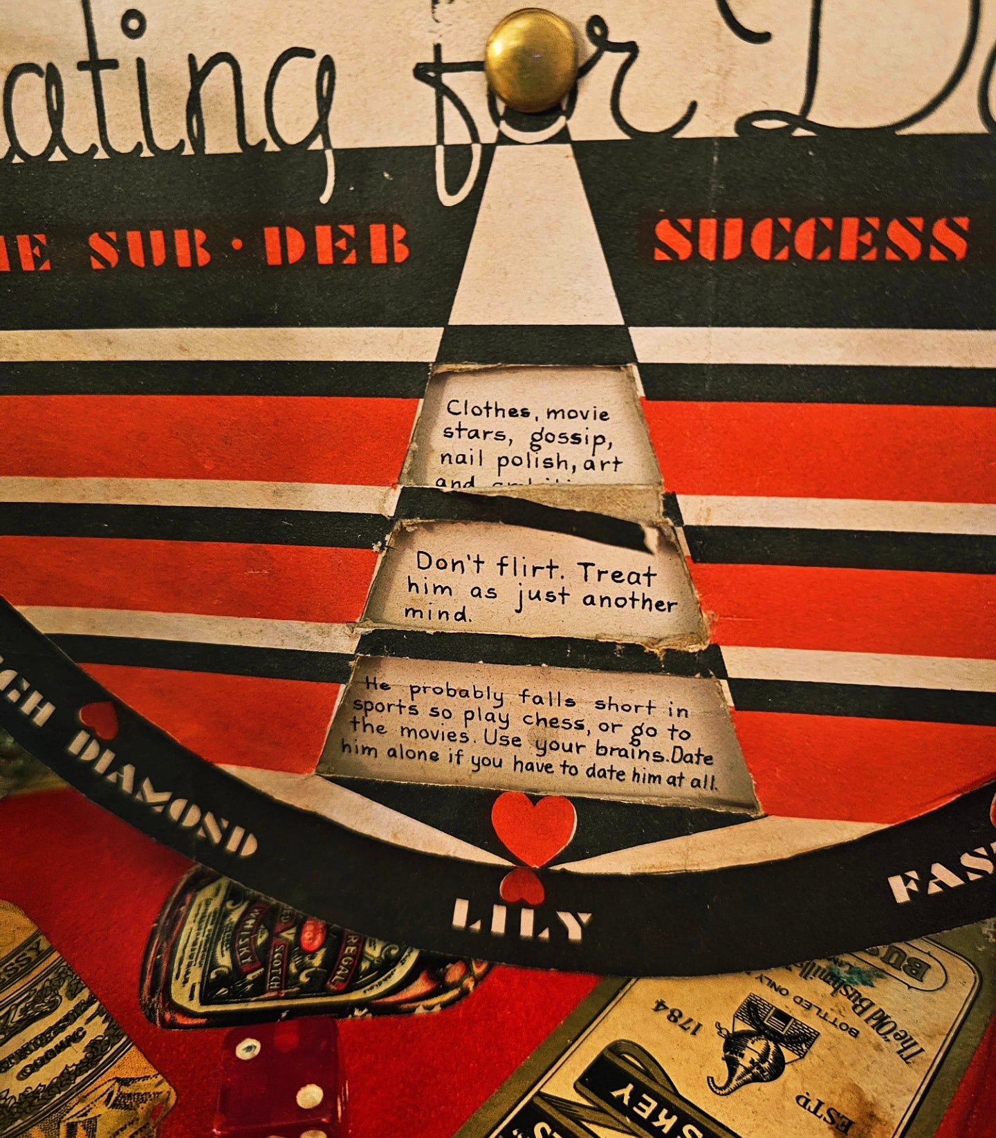 1940s "Rating for Dating" meter wheel from the Ladies Home Journal ❤️💋💌 Spin the wheel to match a personality trait and see if he's a keeper or if you should kick him to the curb. Very outdated advice, obviously lol, but a cutsie little glimpse into 1940s young love. There is wear on the viewing window as pictured. 10" in diameter.