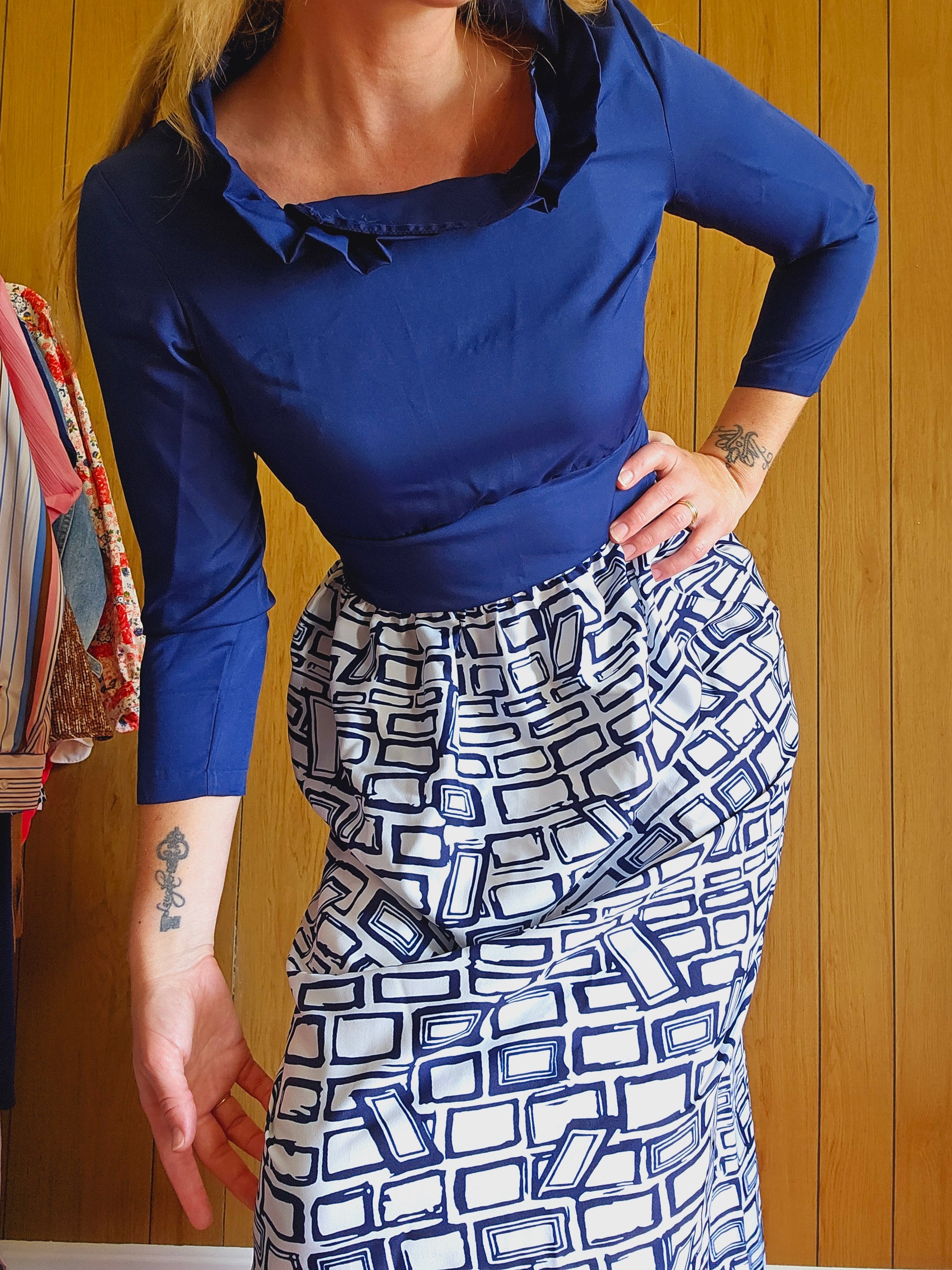 1960s Blue/White "Fashioned by Patty" dress. Measurements taken laid flat so please double where applicable: