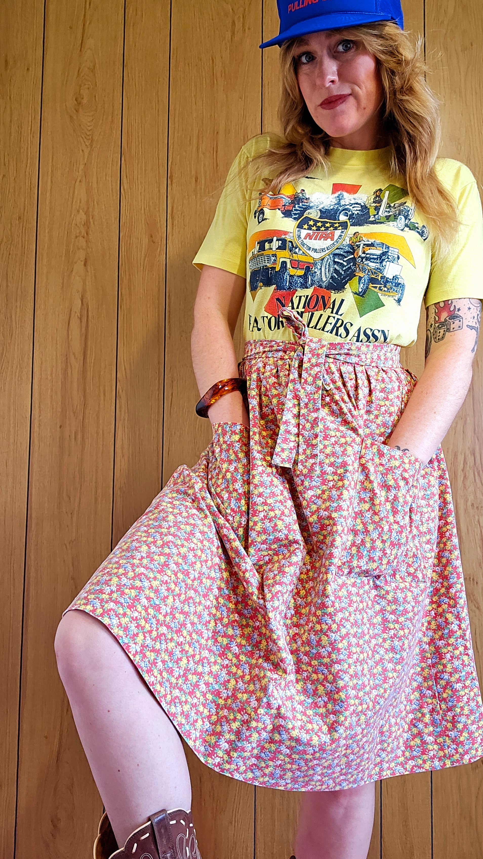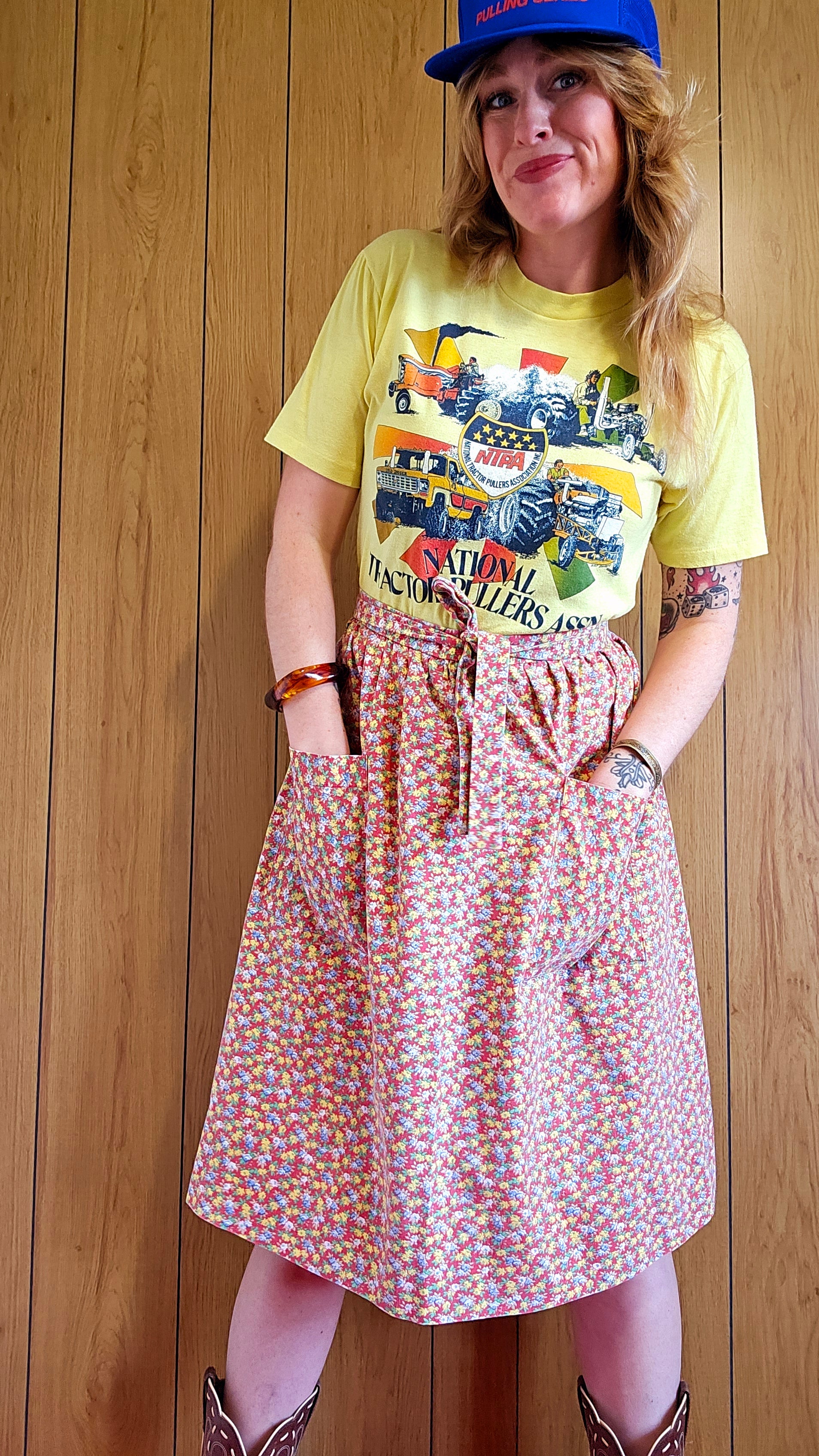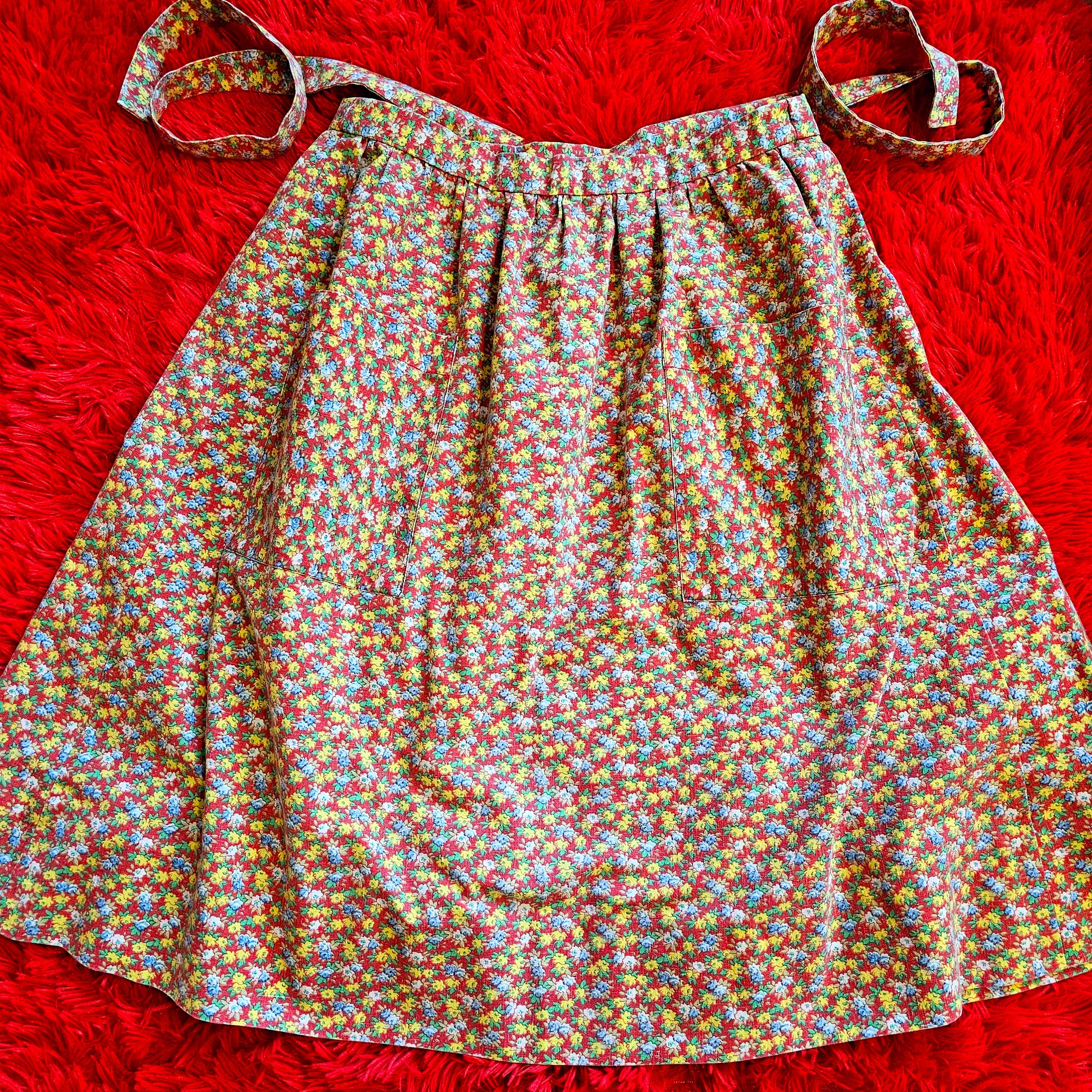 1960s floral wrap skirt with pockets, appears handmade (and done well at that!)