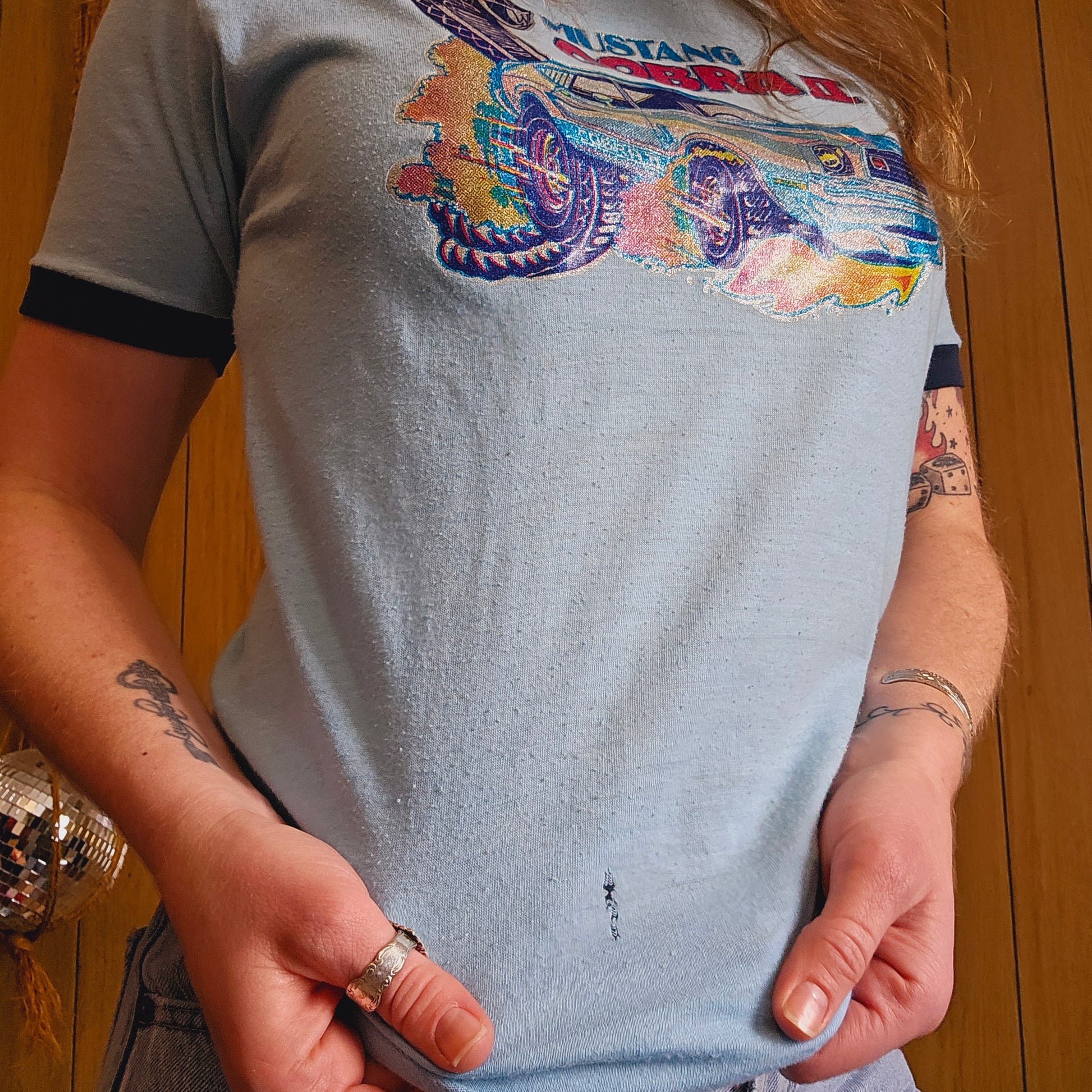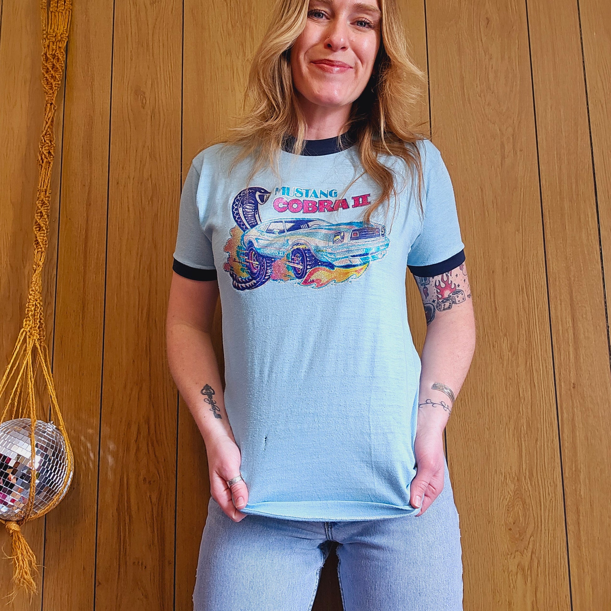 #ringer #vintagetee #vintagetshirt #Ford #mustang #cobra #70sclothing #mensvintage