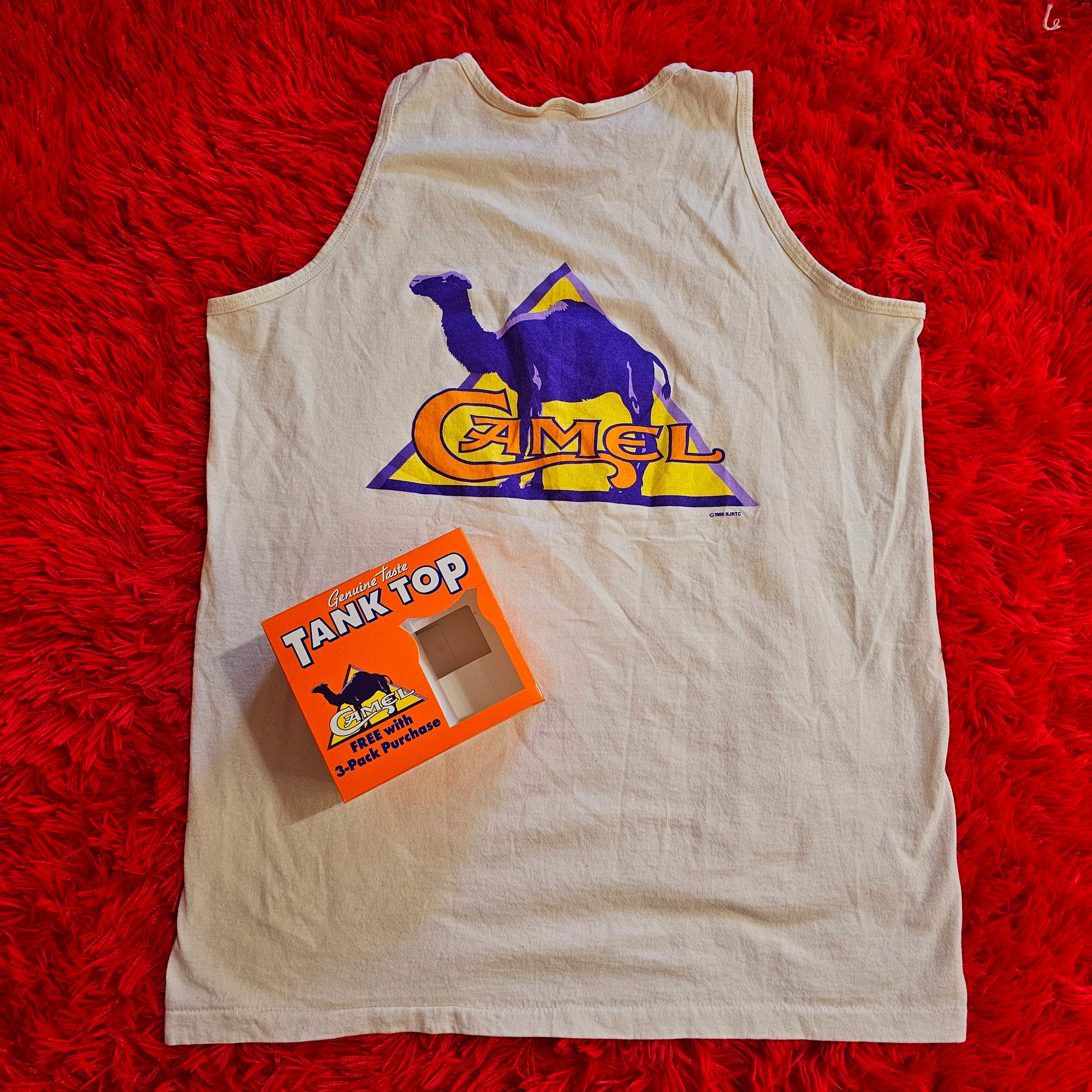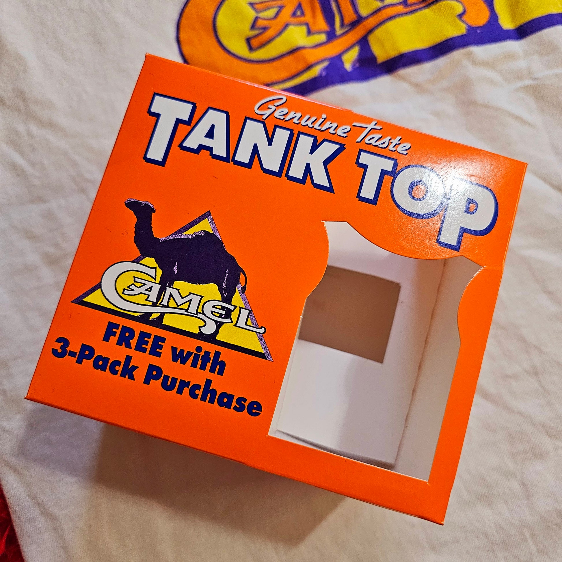 🐪DEADSTOCK!🐪 1995 Camel Tank 🚬!!! Size XL. Laid flat, 22" across chest, length 29". Original packaging included. Sorry, the 3 packs of cigs never made it out of the 90s 😂