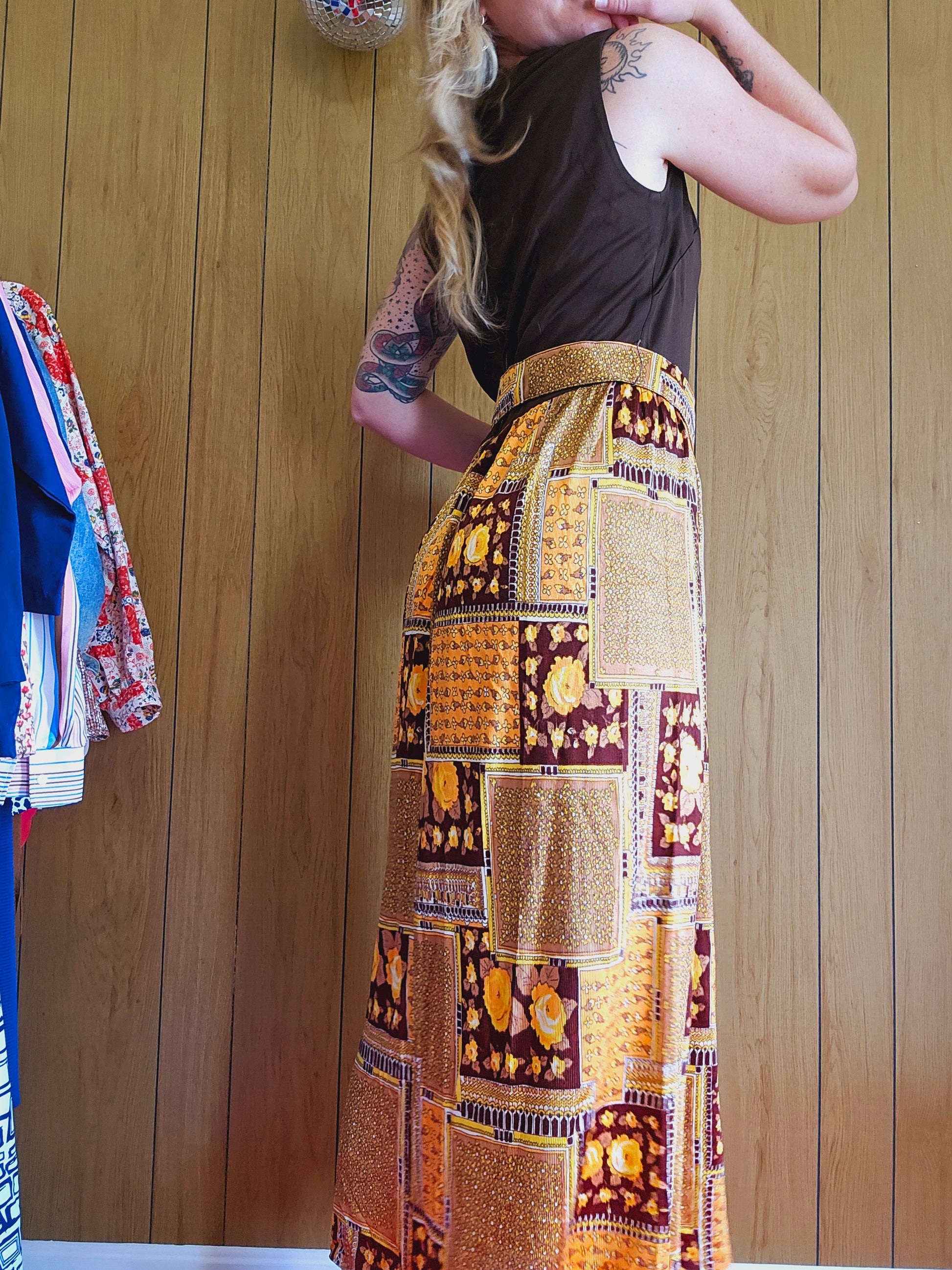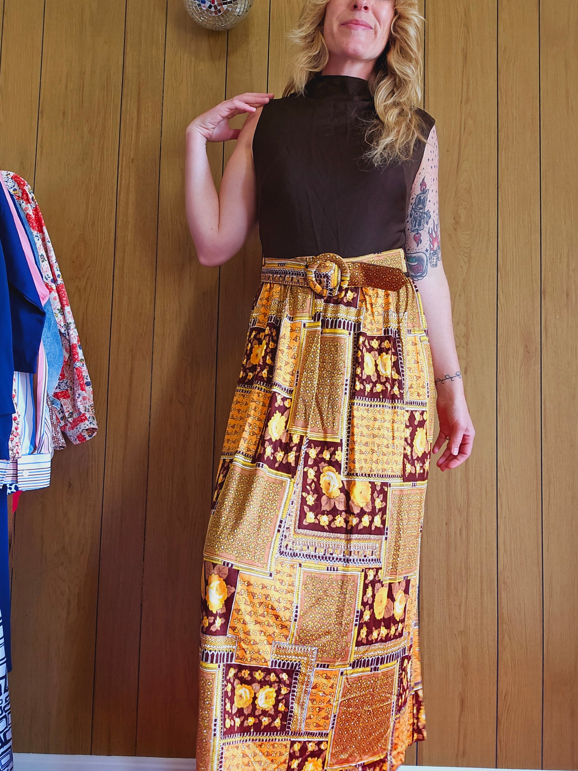 60s/70s Harvest Colorway Belted Dress (M)