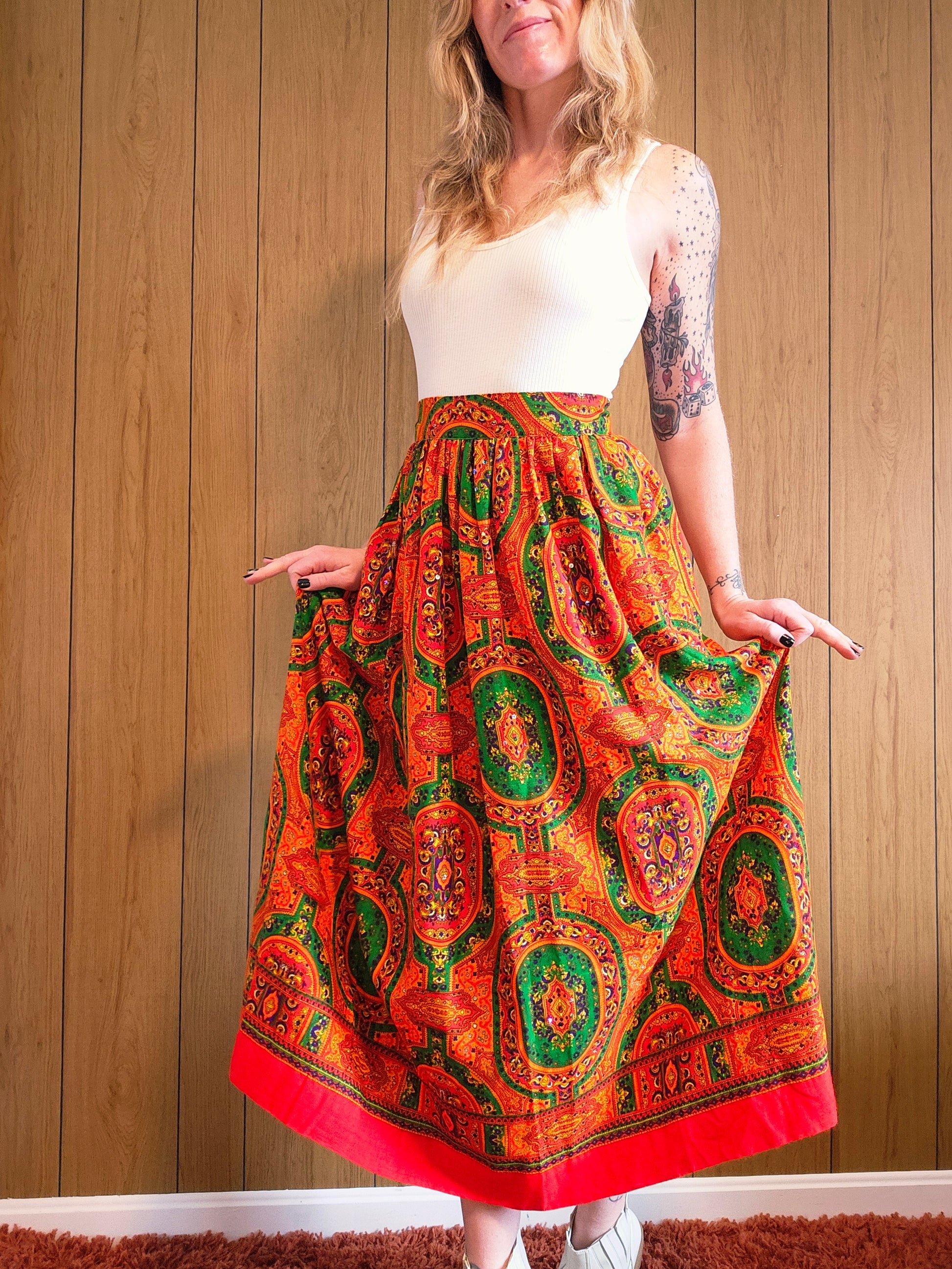 60s/70s Psychedelic Maxi Skirt (XS/S)