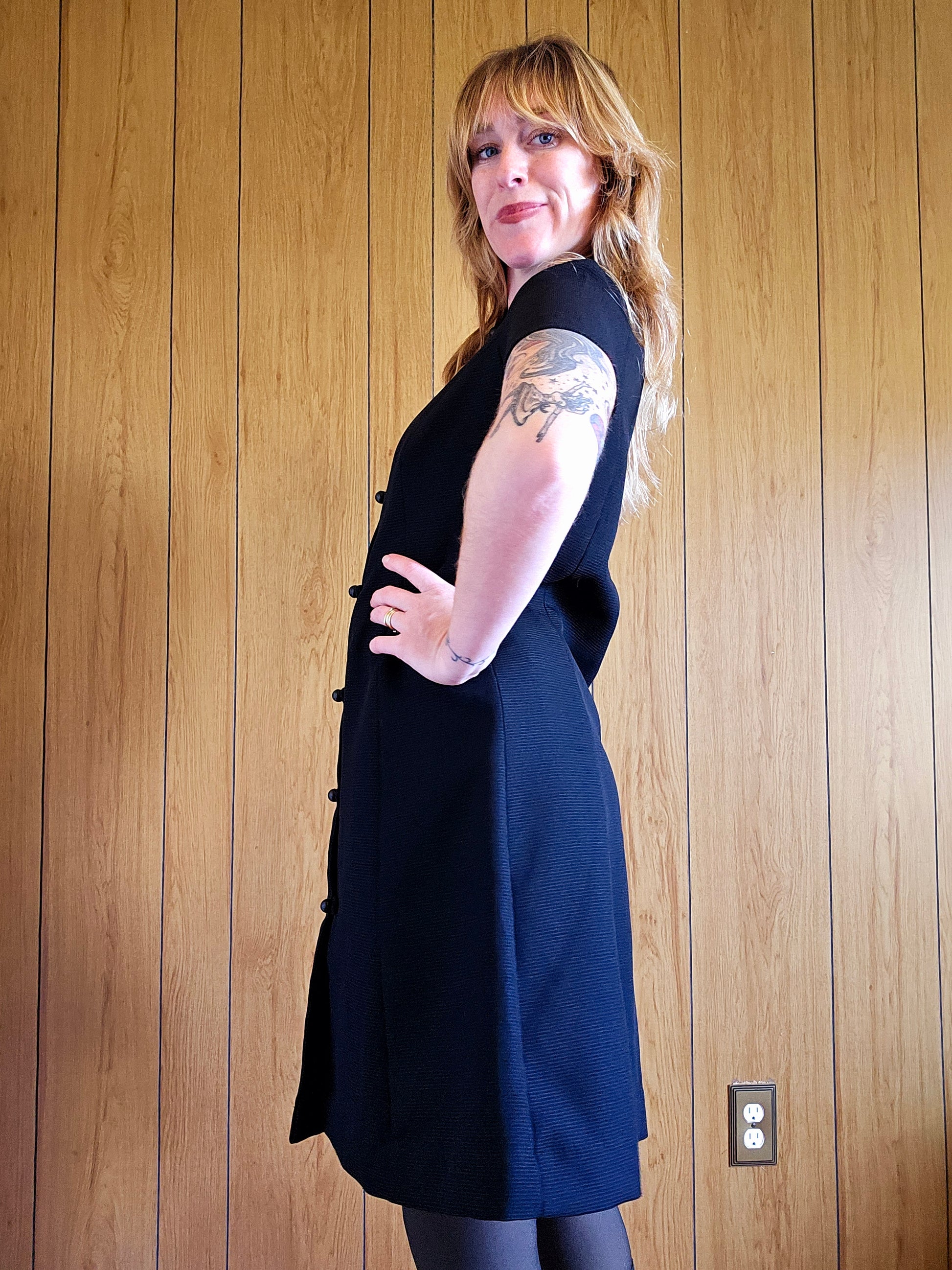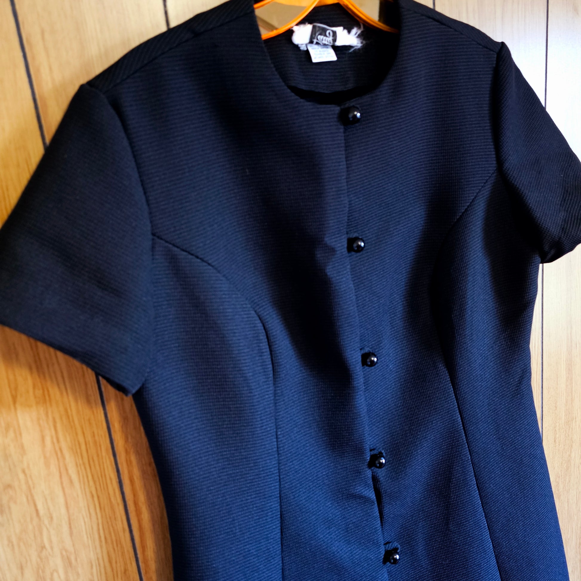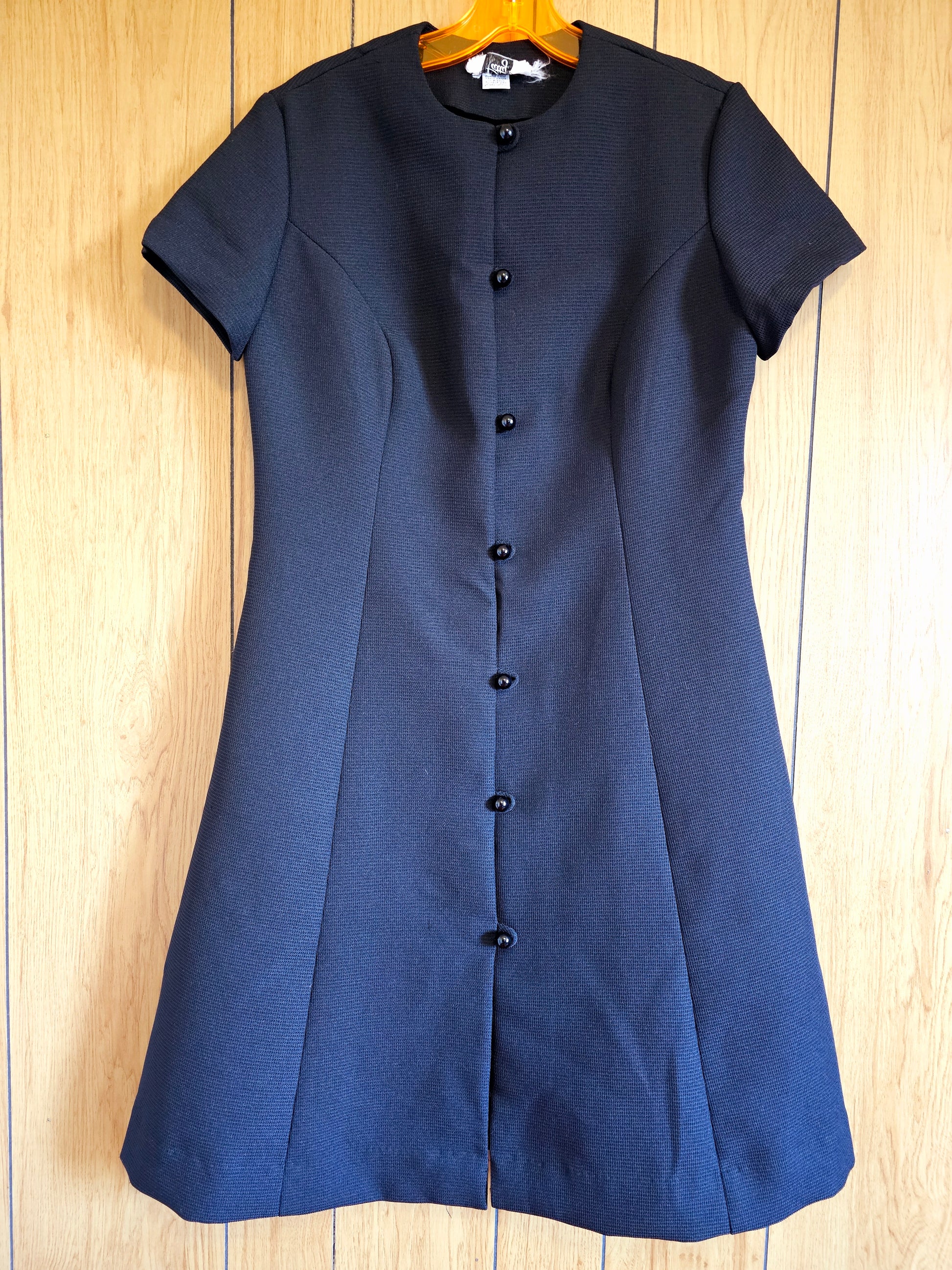 60s Black Full Button Dress (L)