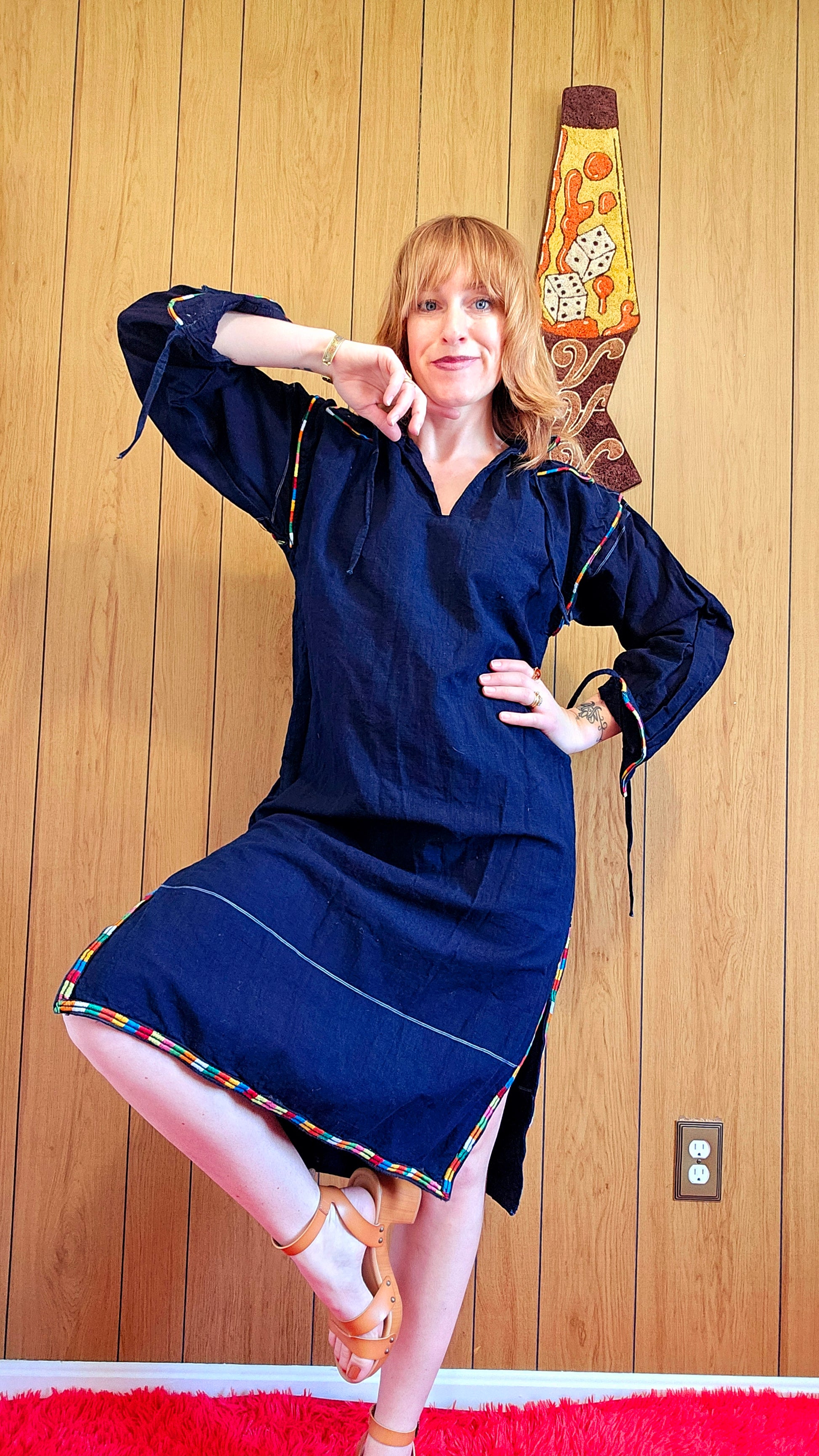 60s Navy Blue Dress with Rainbow Embroidery (M/L)