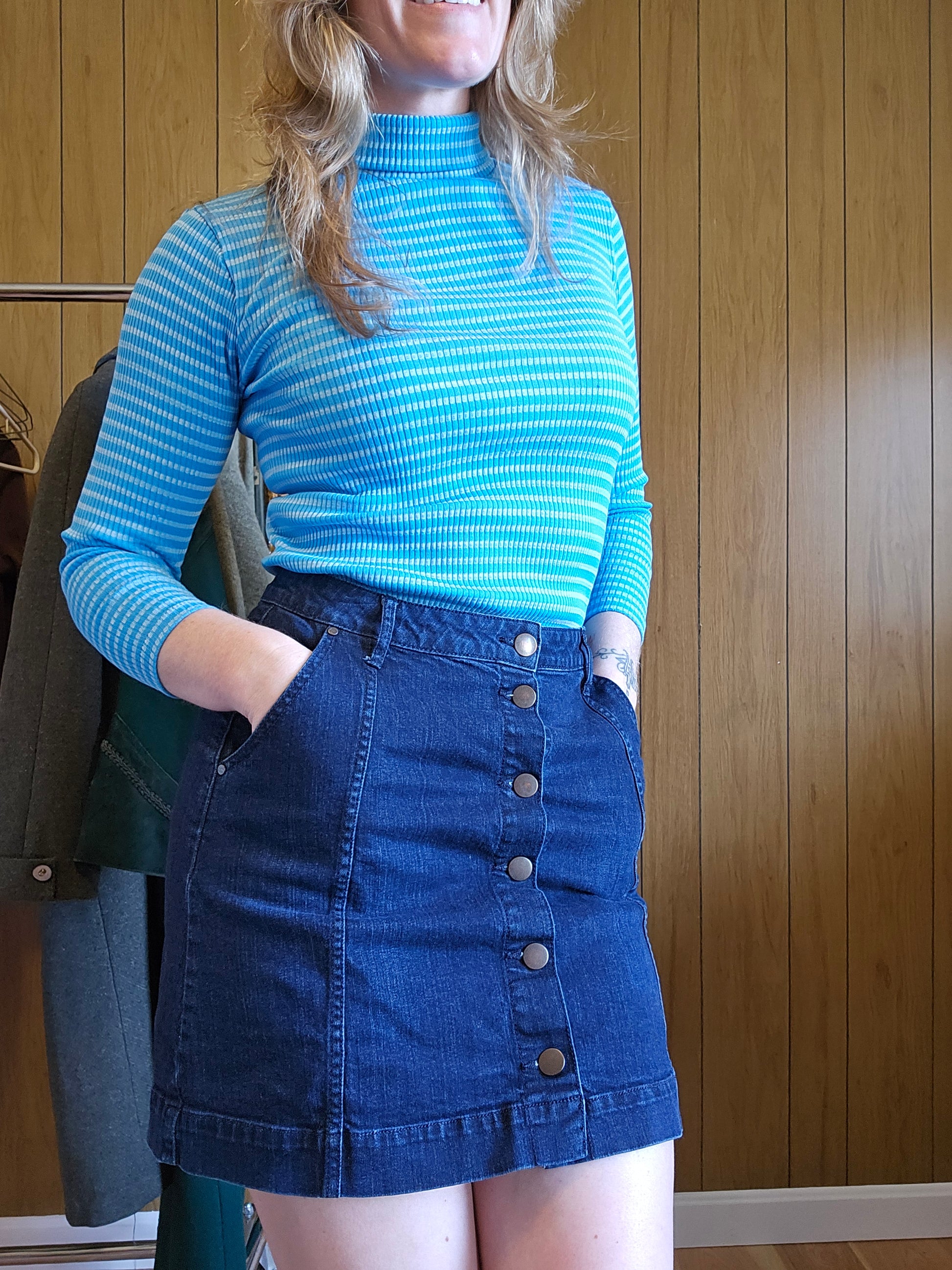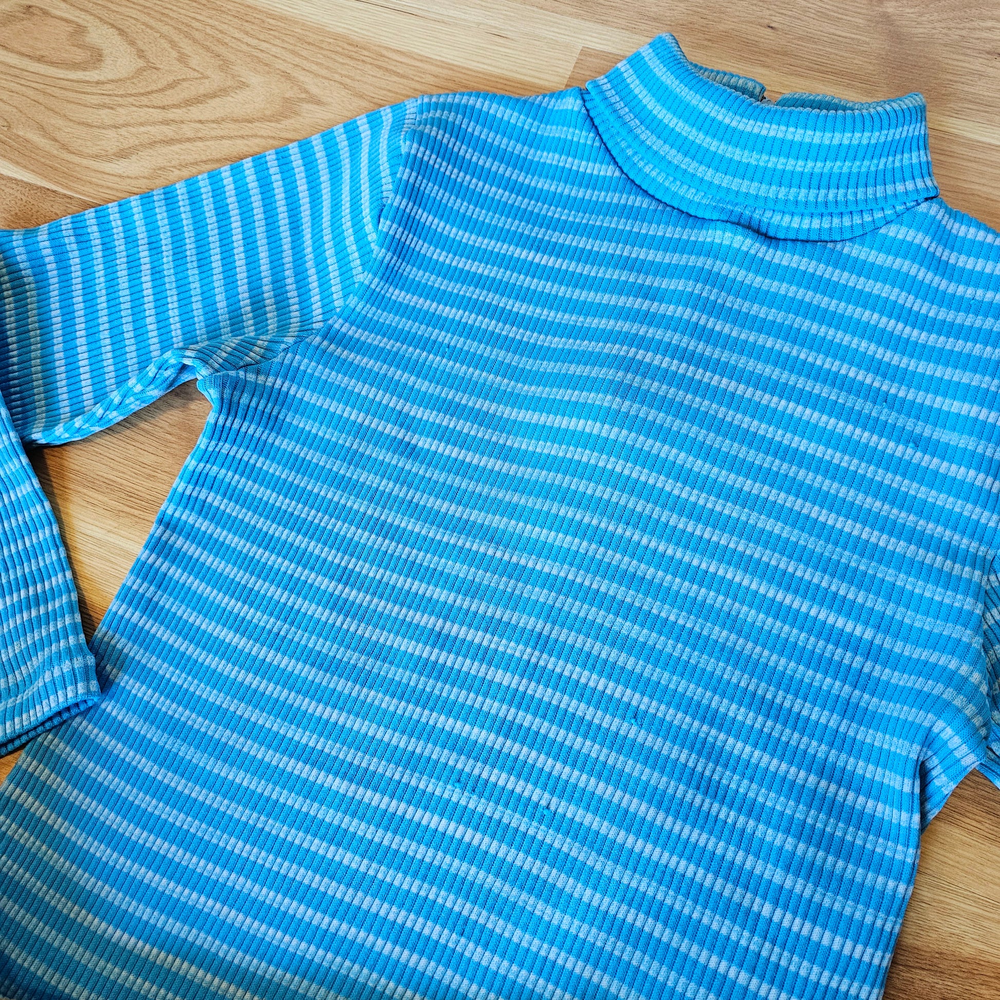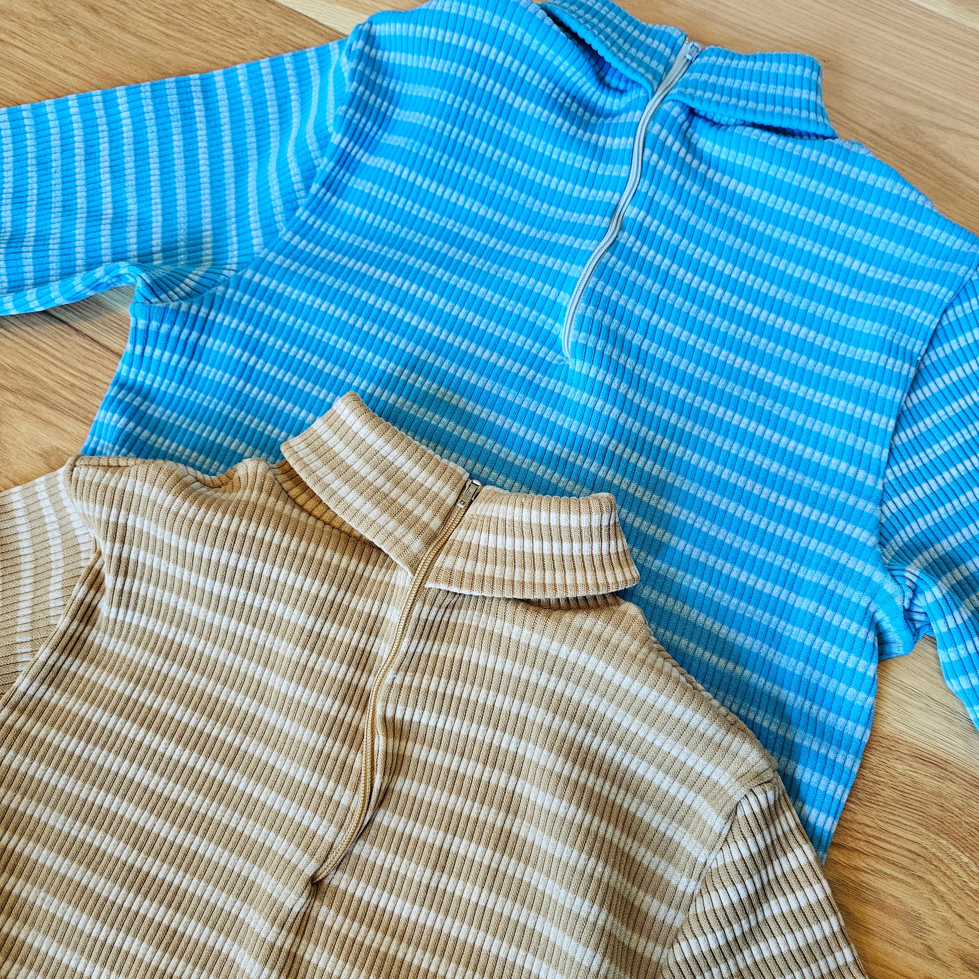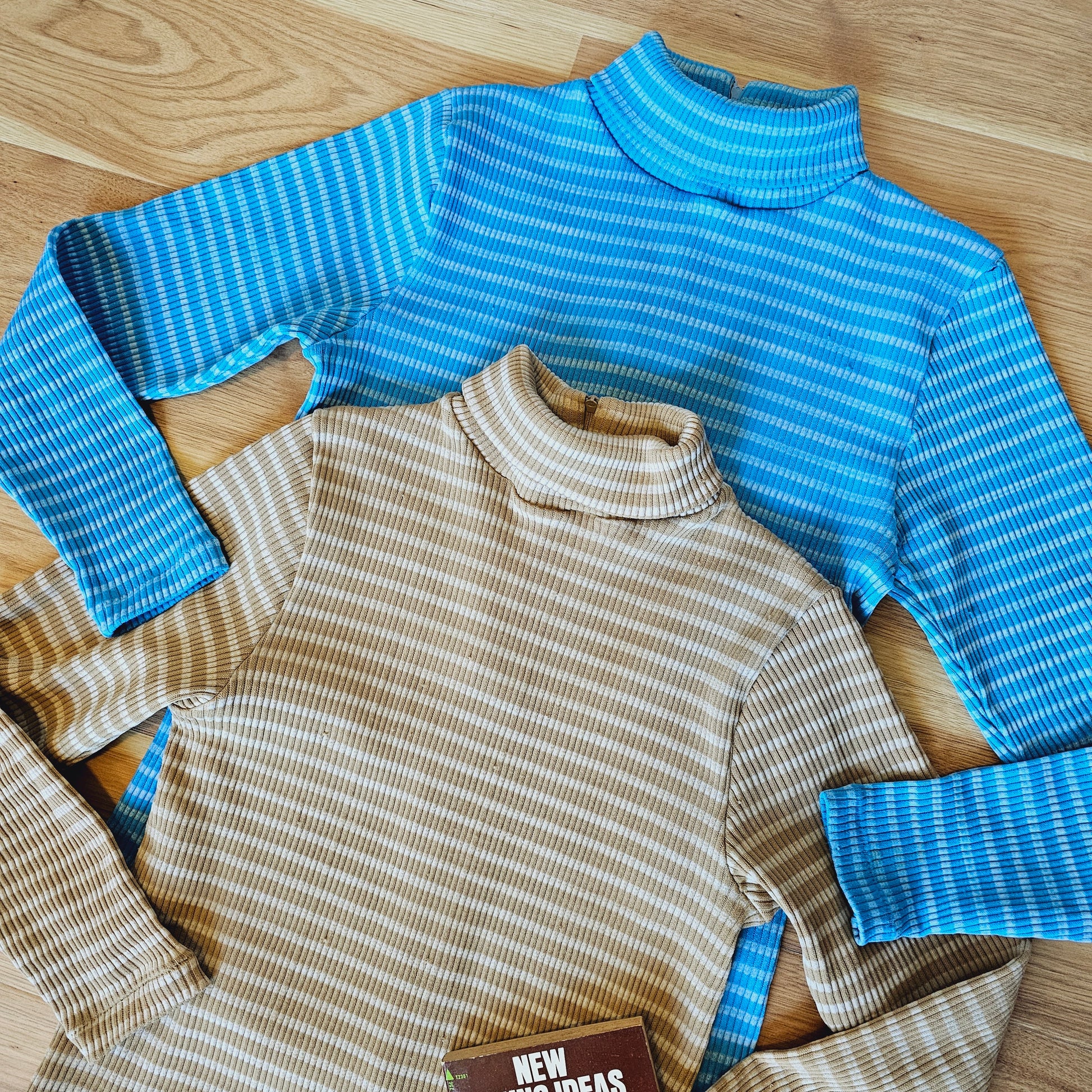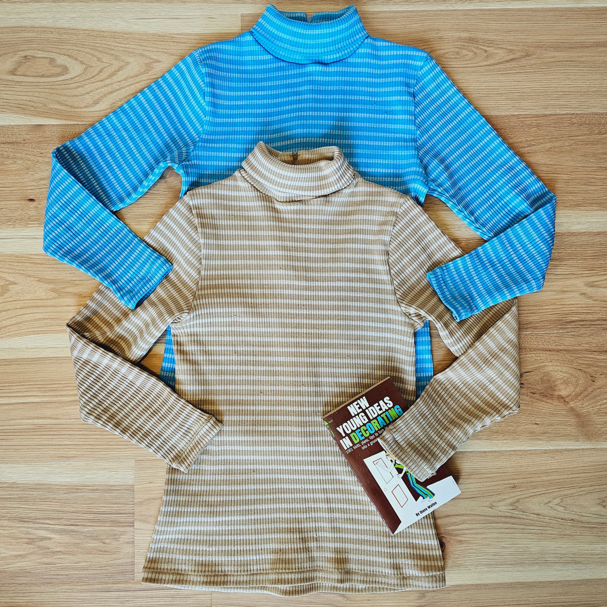 1960s turtle necks! Choose between brown or blue! Zipper closure at the back. Some light piling. Best fit XS/S, please refer to measurements below taken laid flat: