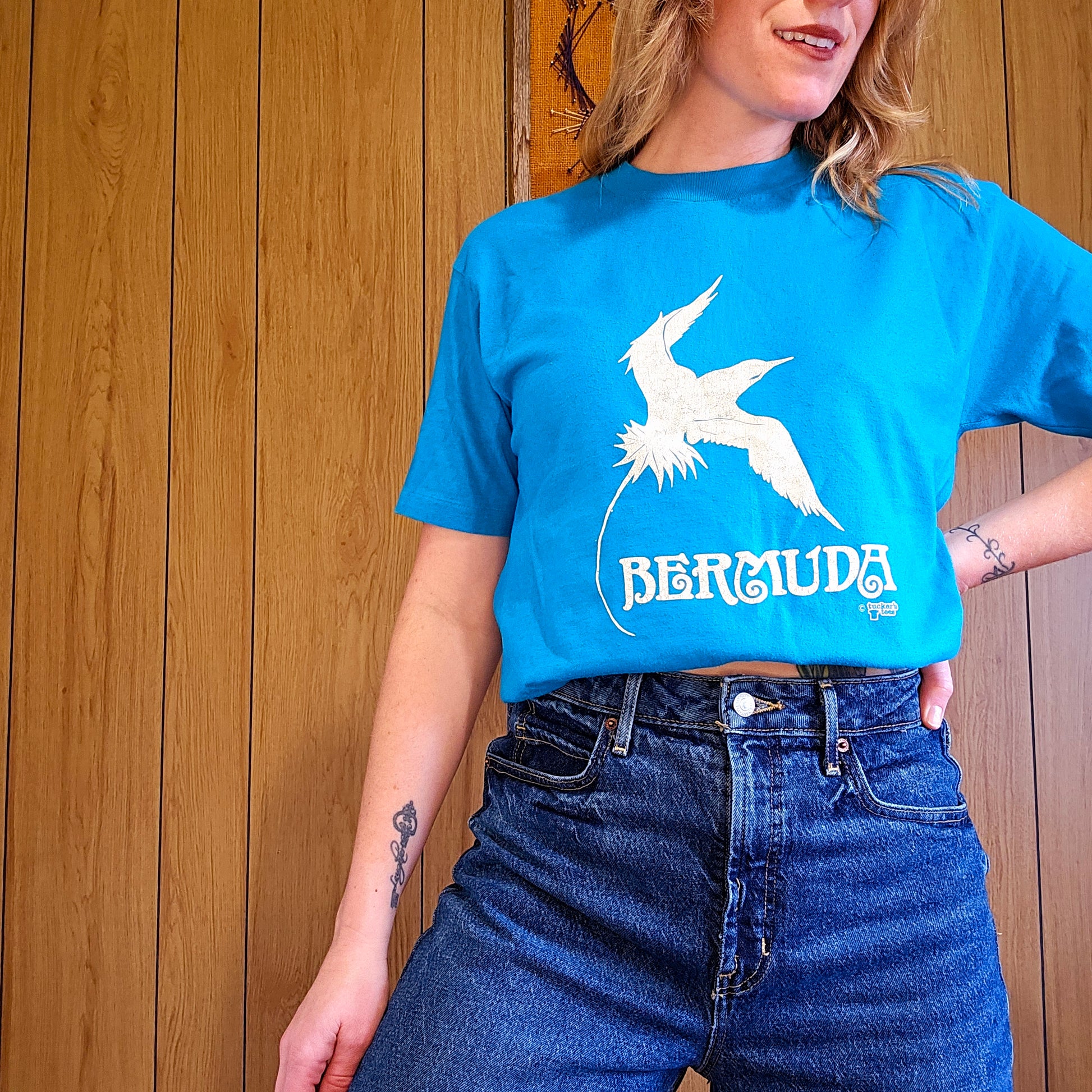 Beautiful single stitch Bermuda tee. Labeled size L. Chest 21" across. Shoulders 20" across. Length 28"