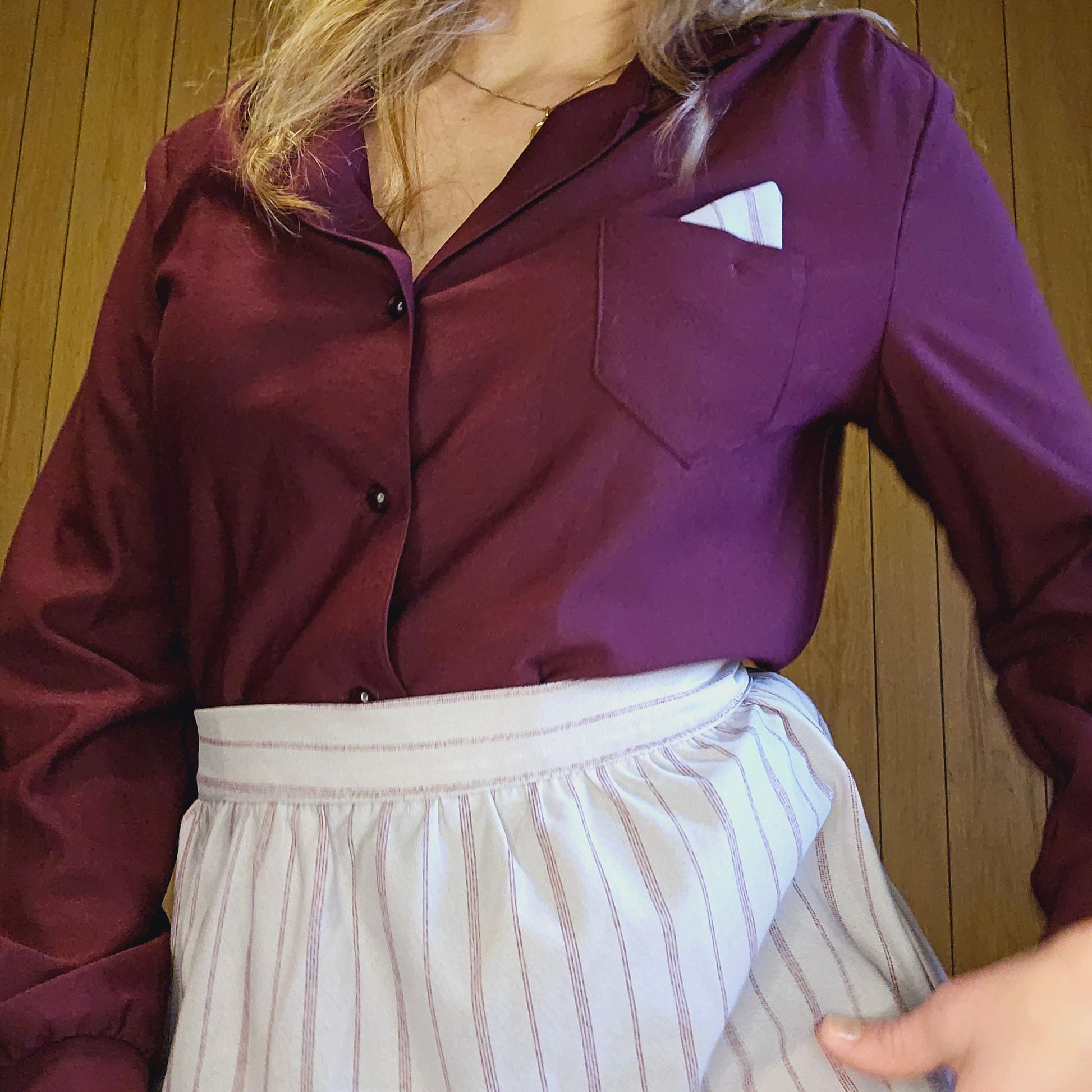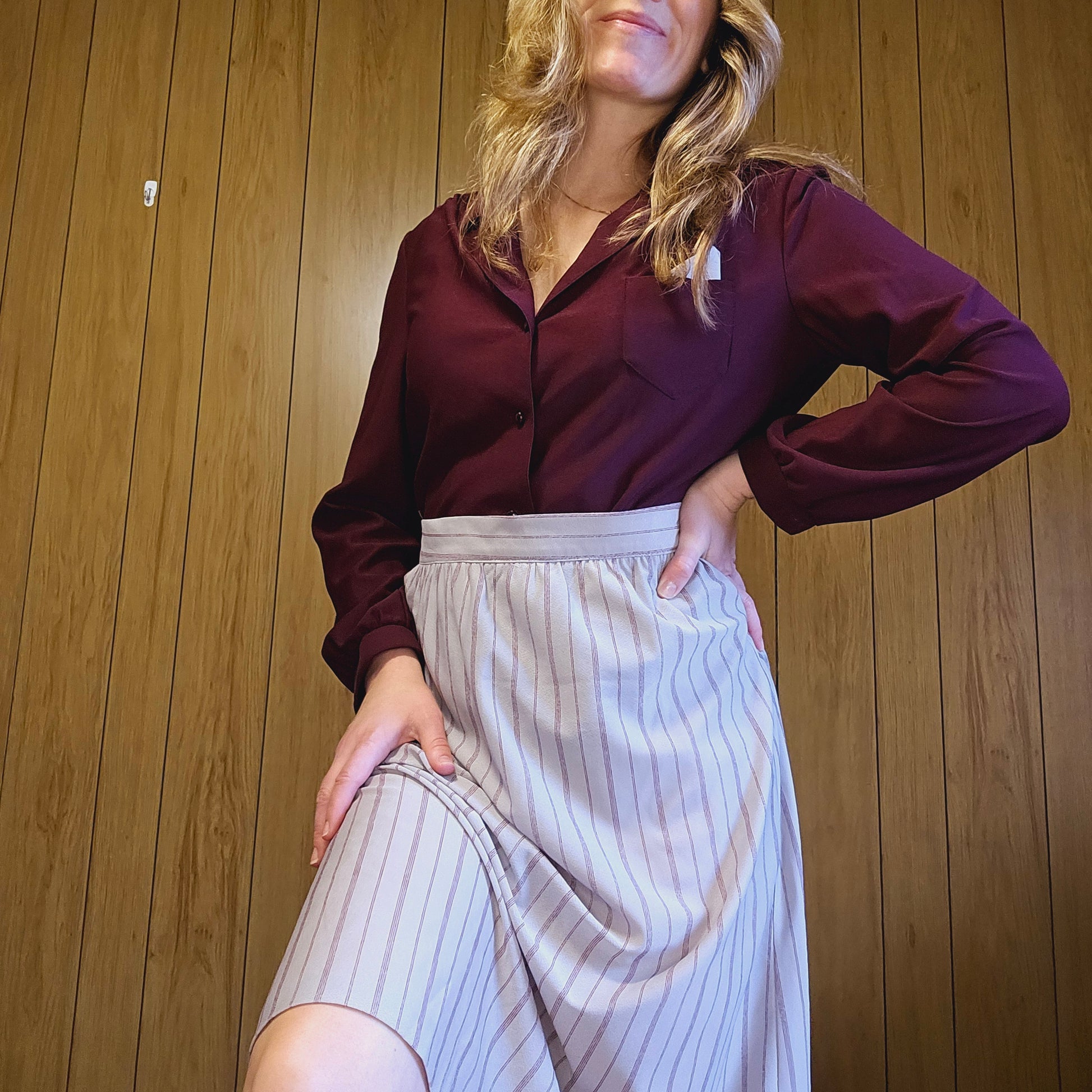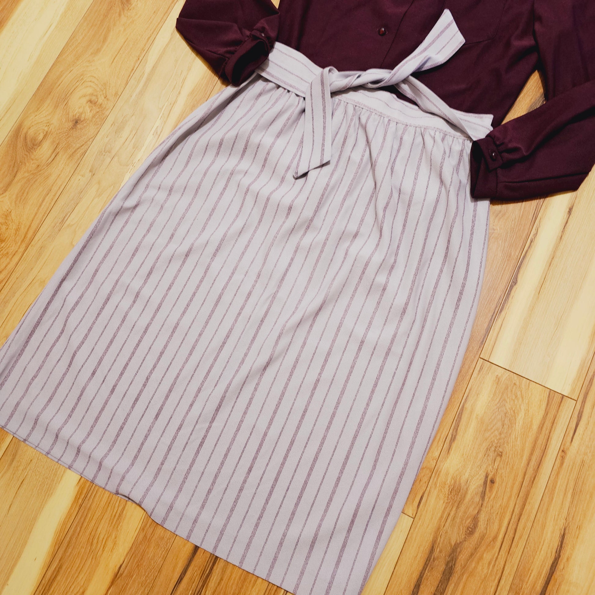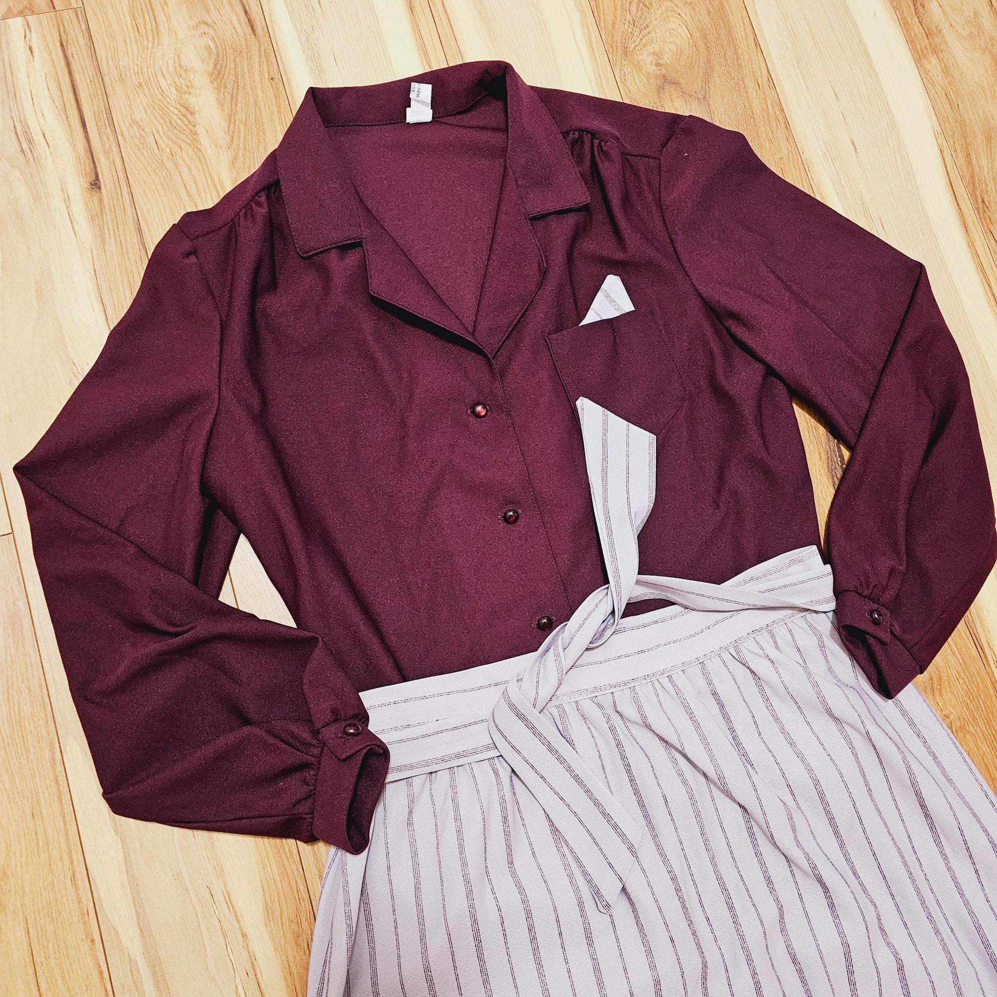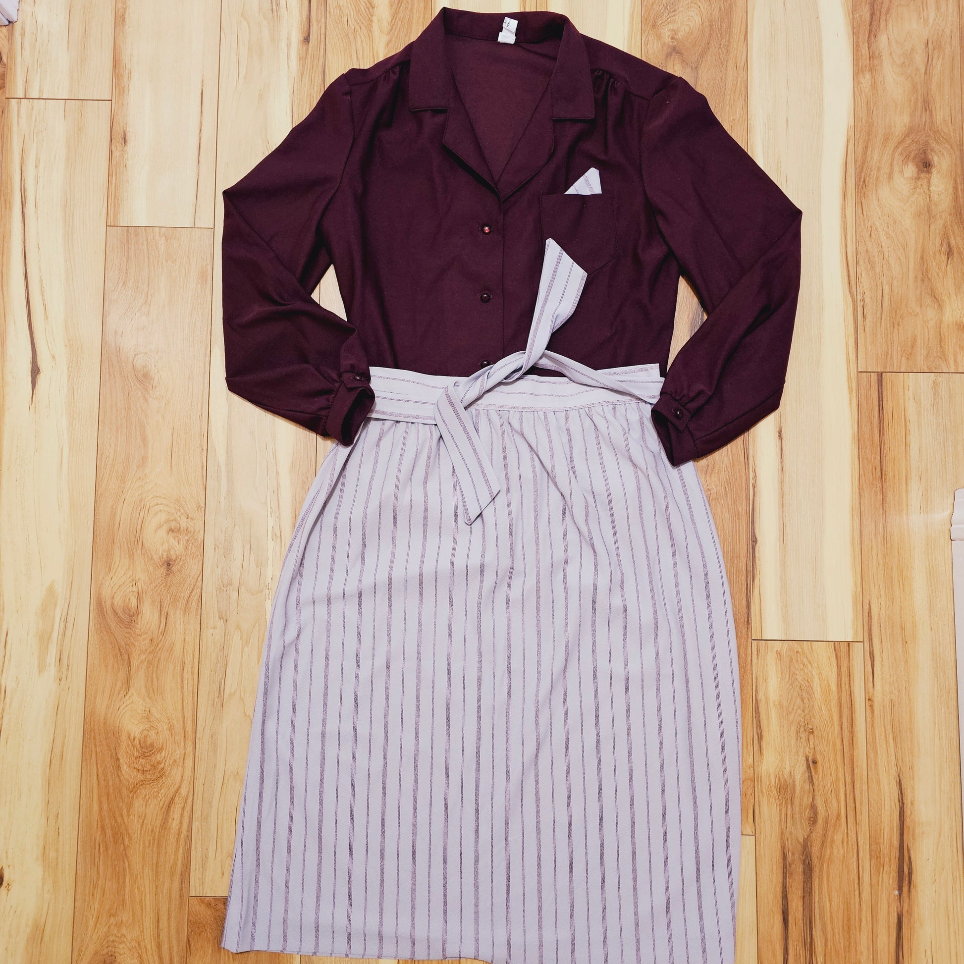 70s 2-Piece Burgundy and Grey Skirt and Top (L)
