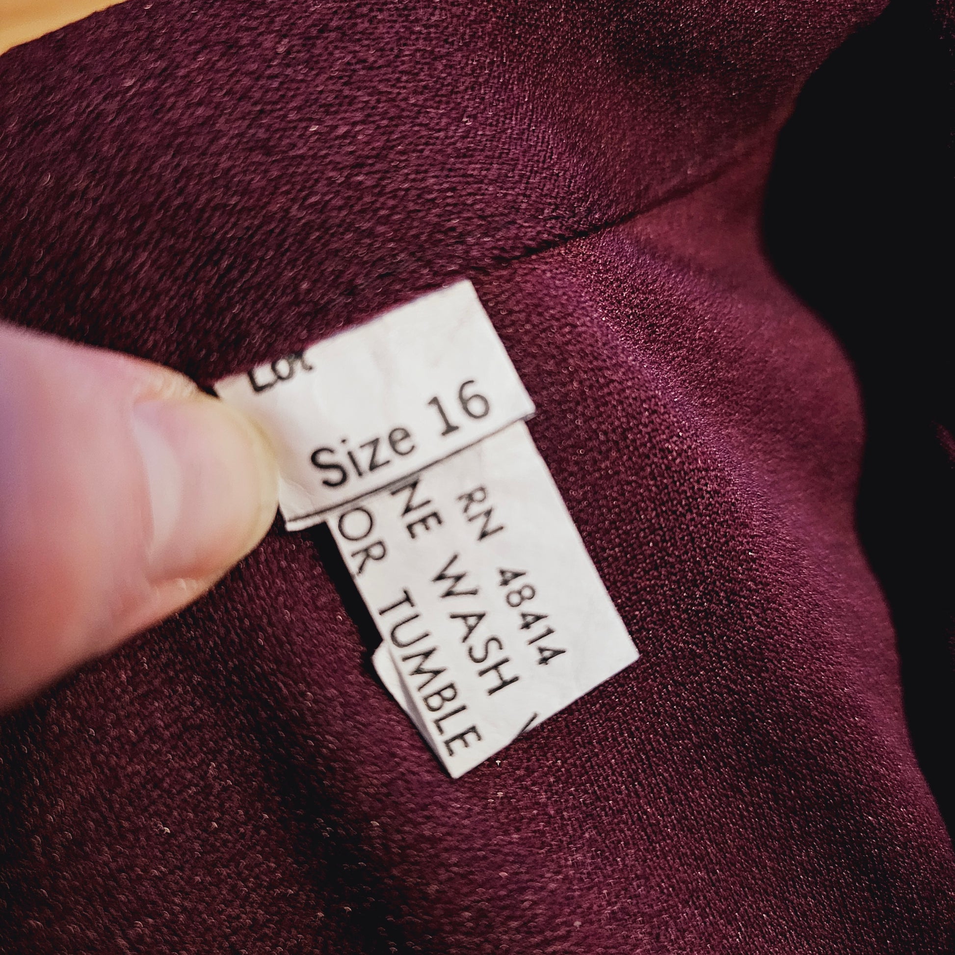Burgundy & grey 2 piece set! Labeled size 16. Fit like a modern large in my opinion. Please see measurements below, taken laid flat: