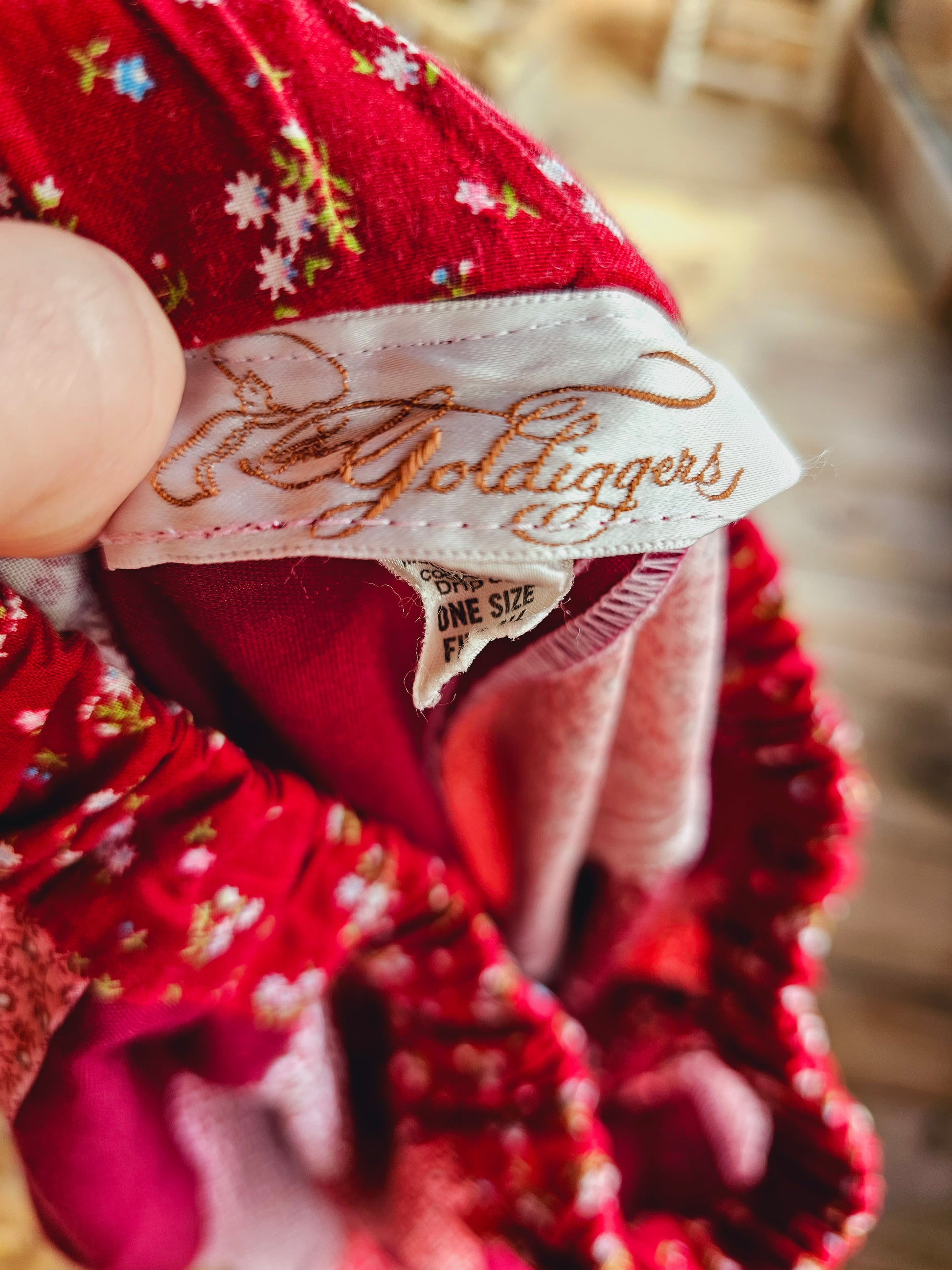 "The Golddiggers" 1970s patchwork/quilted peasant maxi skirt! The detials in this are beautiful. Labeled as one size fits all, and while the hips are open, the waist was a tough one for me to fit as a typical size 6/8. Please refer to the measurements below taken laid flat (not doubled, please double the waist as necessary). There is a color bleed on the back