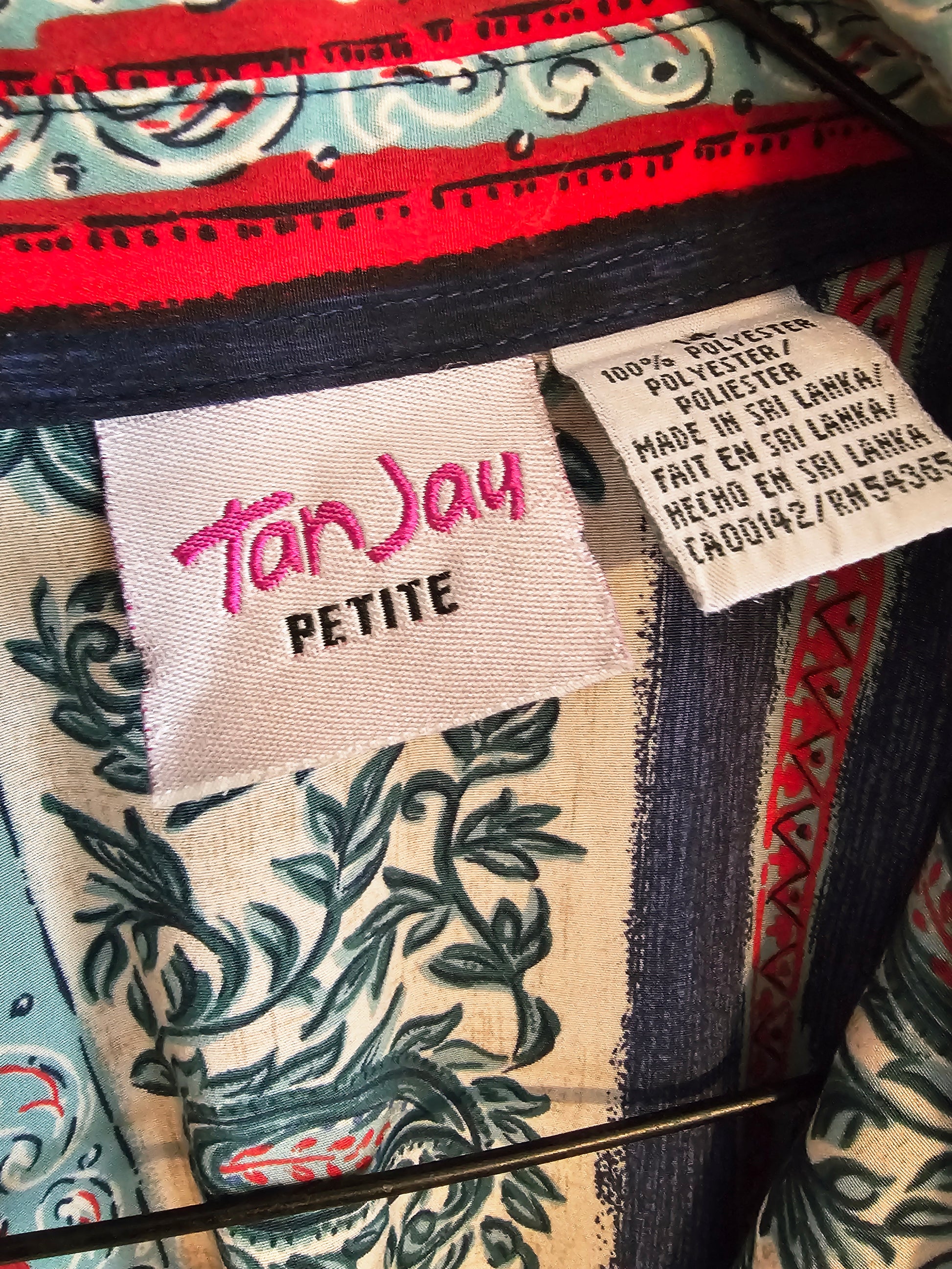 I love this colorway! 80s/90s paisley adorned button down Blouse by TanJay Petite's. Labeled size 14, fits like an estimated large. Modeled here on a medium. Measurements taken laid flat: chest (armpit to armpit) 23", shoulders 17", length 24"