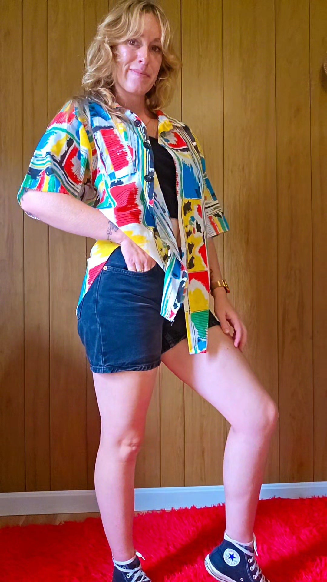 Marked size large, fun oversized cut