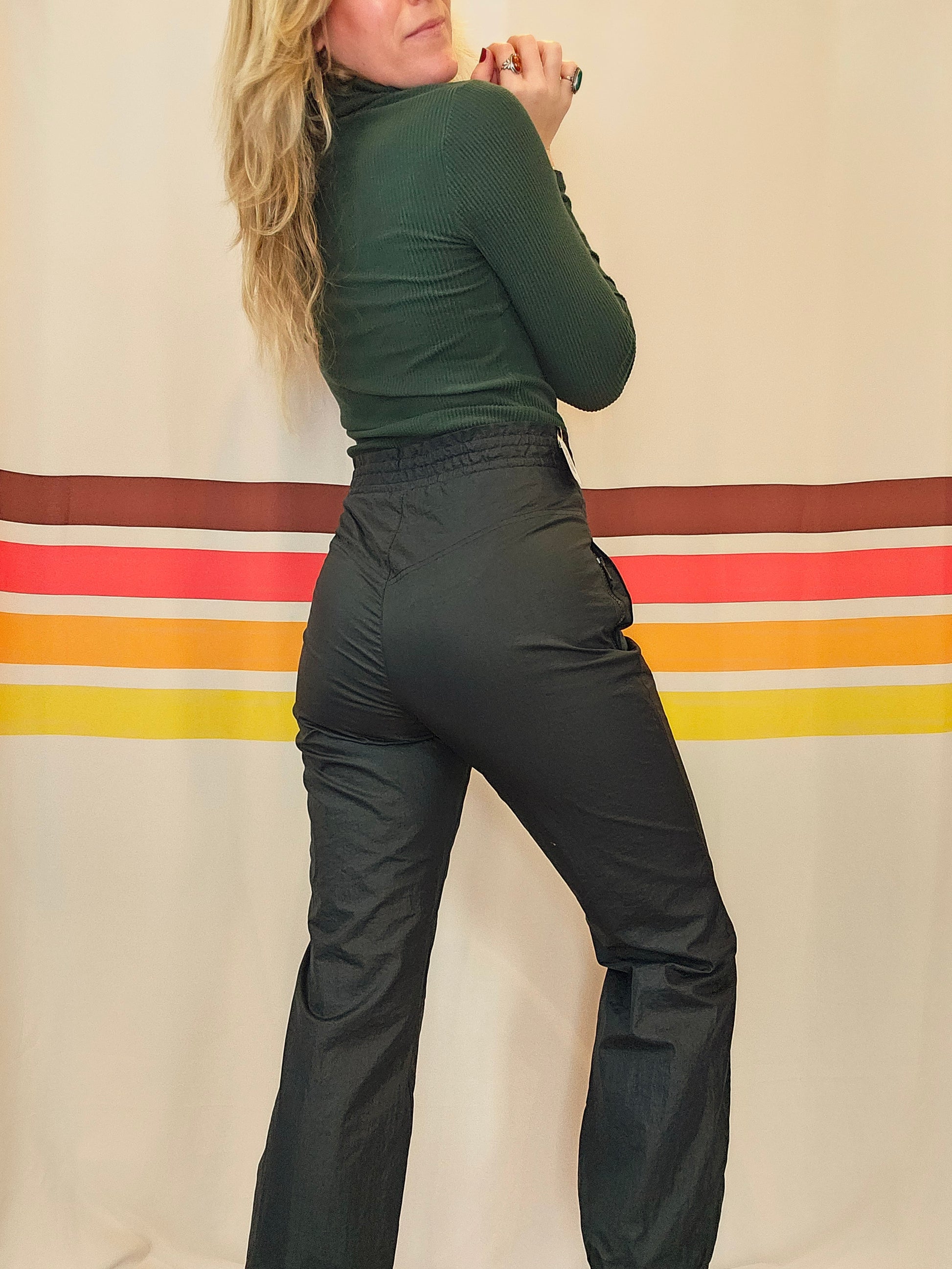 1980s womens Obermeyer black ski pants! Lightweight. Button & zip closure and zip closure pockets. Elastic bottoms. Some elastic on the waist at the hips. Labeled size 8, fit closer to a modern size 4/6. Modeled on a modern size 8 and while they did make it on eventually it was a process and there wasnt much room to move hahaha