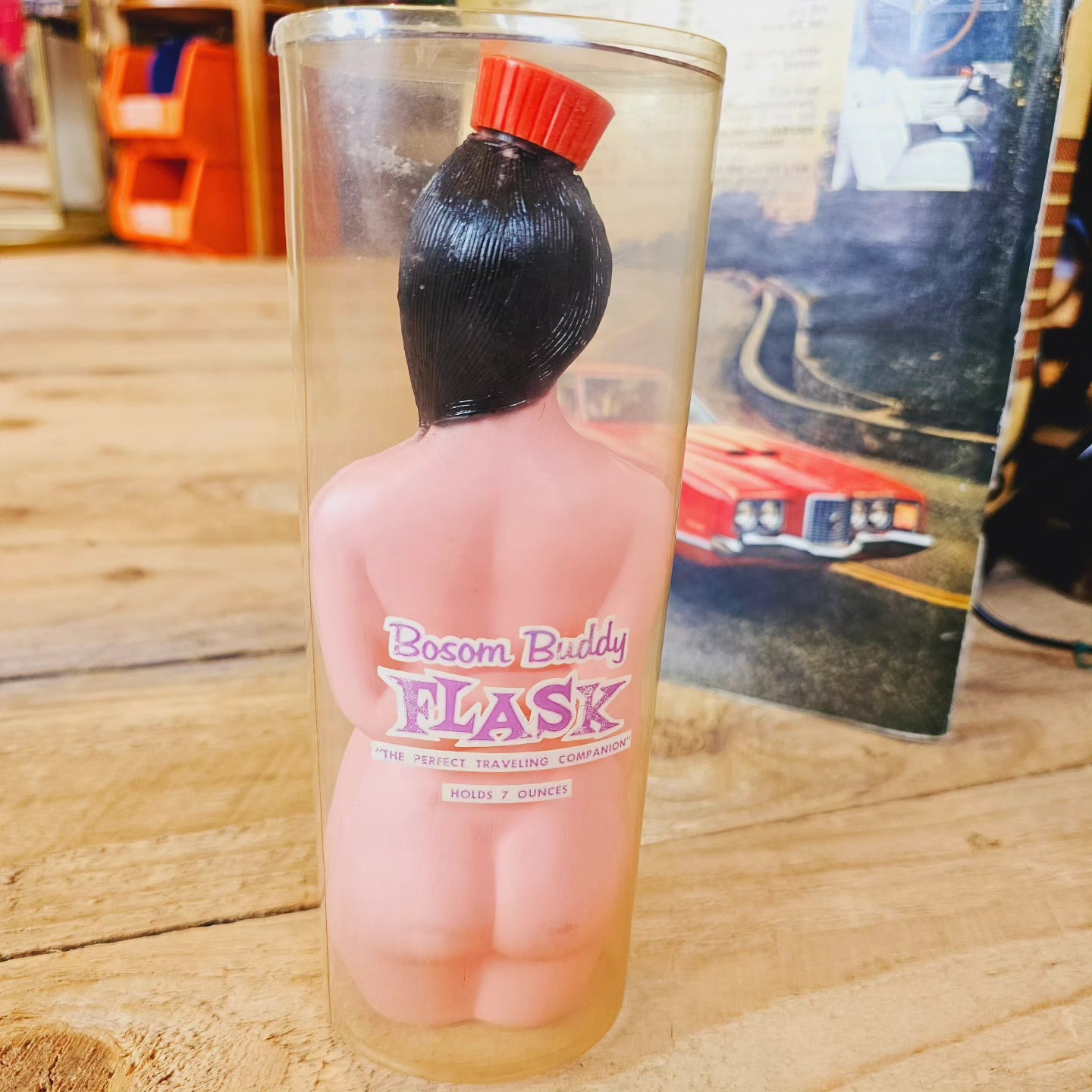 1960s Bosom Buddy Flask! 7 3/4 in. These are far and few between and have sold online for double the price in the same condition. Great opportunity to add to your vintage collection!