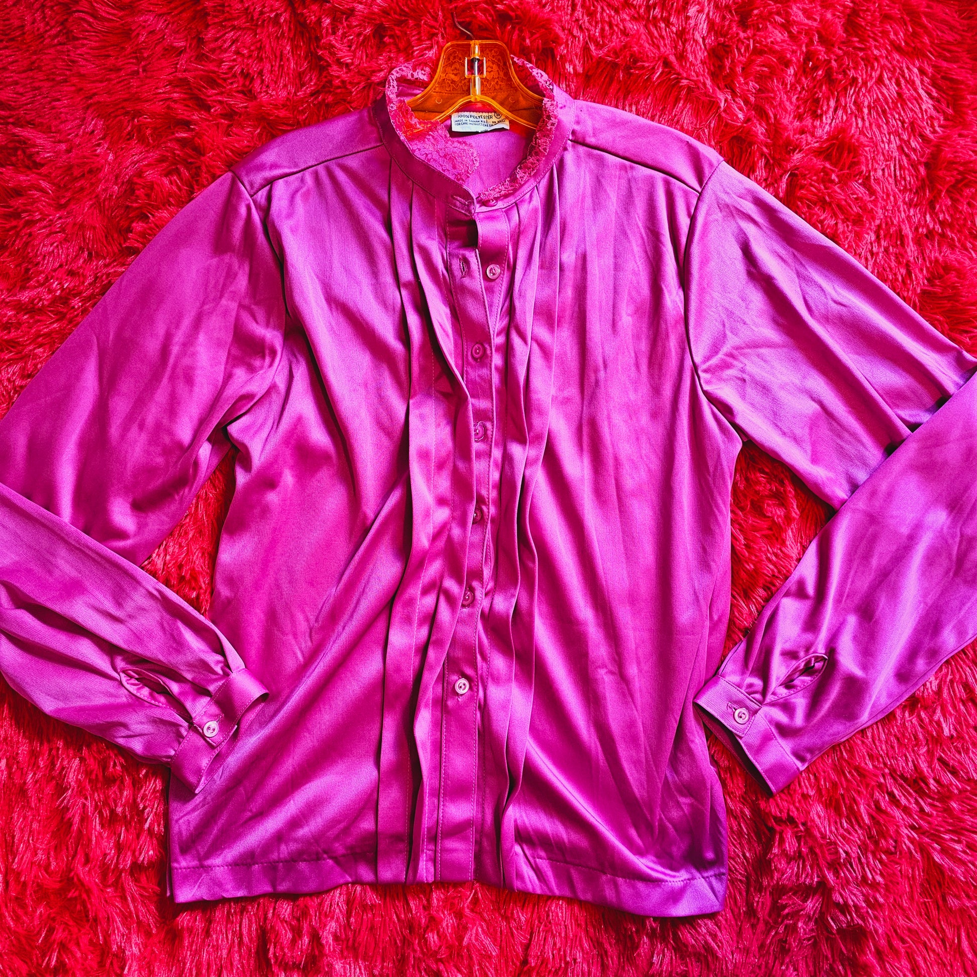 #vintageblouse #Satin #silk #fuchsia #pink #60s #70s